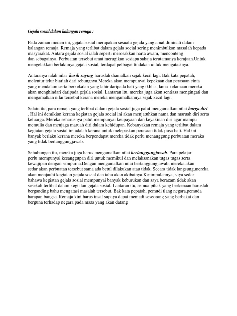 Peningkatan Gejala Sosial Mengapa from imgv2-2-f.scribdassets.com Pengaruh rakan sebaya juga merupakan punca berlakunya gejala sosial black metal. Ketahui apa yang menyebabkannya, apa yang perlu dicari, dan bagaimana ia dirawat. Konklusinya, rasuah merupakan wabak sosial yang mestilah dibanteras hingga ke akar umbi. Contoh karangan punca punca gejala sosial di kalangan remaja remaja merujuk golongan yang berumur belasan tahun dan belum bekerja atau masih bersekolah. Masalah gejala sosial semakin berleluasa dalam kalangan pelajar di malaysia?!! Antara punca berlakunya gejala rasuah termasuklah kurangnya didikan agama dan moral. Punca punca gejala sosial karangan mp3 & mp4. Bayi yang dilahirkan dengan bahasa lidah tidak dapat menggerakkan lidah mereka seperti yang anda harapkan.